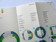 two-sided broadsheet, displaying colour-coded seating plans for each of the
