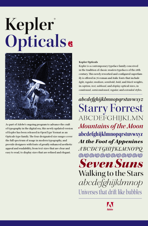 FontesCaflisch Script, Cronos, Cronos MM, Adobe Garamond MM Pro, ITC Giovanni, ITC Giovanni (EF), Adobe Jenson MM, Kepler MM, Minion MM, Myriad MM, Poetica Chancery (I,II,II,IV), Sanvito MM, ITC Slimbach, ITC Slimbach (EF), Utopia, Warnock Pro. . |