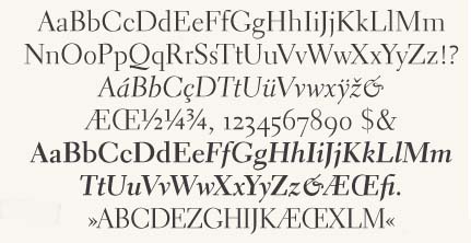 A fonte digital dispõe dos estilos Regular, Display, Cursive, Bold e Cursive Bold. Os desenhos originais de Dwiggins estão patentes na Boston Public Library. A Electra apareceu com uma romana inclinada a fazer de cursiva, mas foi o próprio Dwiggins que acabou por desenhar em 1940 o corte itálico hoje comum. http://www.smith.edu/libraries/libs PublicaçõesW.A. Dwiggins. WAD to RR, a letter about designing type. Cambridge. Harvard College Library, Cambridge, 1940 BibliografiaHeitlinger, Paulo. Tipografia: origens, formas e uso das letras. Copyright © 2006 Paulo Heitlinger, ISBN 10 972-576-396-3 , ISBN 13 978-972-576-396-4, Depósito legal 248 958/06. Dinalivro. Lisboa, 2006. Blumenthal, Joseph. The Printed Book in America. London. The Scolar Press Limited, 1977. p. 88. Carter, Sebastian, 'William Addison Dwiggins' in Twentieth Century type designers. London. Lund Humphries. 1995. p. 67. Tracy, Walter. The Typographic Scene. London. Gordon Fraser Limited. 1988. p. 30. McGrew, Mac. American Metal Typefaces of the Twentieth Century. Delaware. Oak Knoll. 1993. p. 168. Lawson, Alexander, Anatomy of a Typeface. Boston: David R. Godine, Publisher, Inc. 1990. p. 331. Shaw, Paul. Tradition and Innovation: 'The Design Work of William Addison Dwiggins' in Design Issues, Vol. I, No. 2 Mergenthaler Linotype Company, Falcon typeface specimen. New York: Mergenthaler Linotype Company, c. 1961. Fournier, Simon-Pierre le jeune, Modeles de Caracteres. Paris, 1742. Linotype and Machinery Limited, Caladonia type specimen. London : Linotype and Machinery Limited, c. 1953. Dwiggins, William Addison, WAD to RR a letter about designing type. Cambridge, MA, Harvard College Library, 1940. Merganthaler Linotype Company, Falcon type specimen. New York: Merganthaler Linotype Company. c. 1961. Dwiggins, William Addison, Eldorado type specimen. New York: Merganthaler Linotype Company, 1953. Thomas, Henry. Typography of the Spanish XVI century. London, Ernest Benn Ltd, 1926. McGrew, Mac, American Metal Typefaces of the Twentieth Century. Delaware: Oak Knoll, 1993. Shaw, Paul. Tradition and Innovation: 'The Design Work of William Addison Dwiggins' in Design Issues, Vol. I, Nº Tracy, Walter, Letters of Credit. London: Gordon Fraser Limited, 1986. Tracy, Walter, The Typographic Scene. London: Gordon Fraser Limited, 1988. Página actualizada em 2014 |